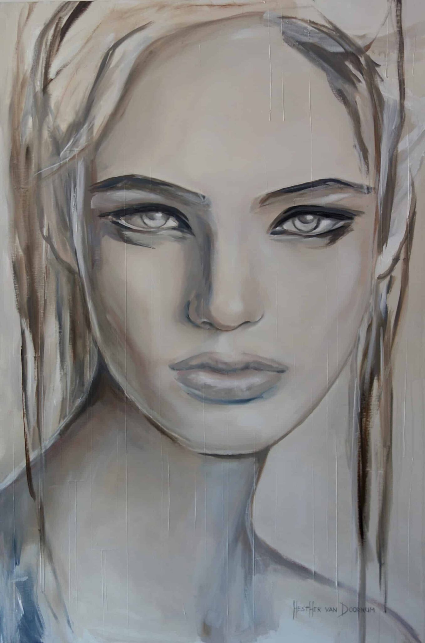 Between the wintry showers I notice the colours in the sky slowly change… A hint of green, blue, brown, reddish, gold. Gently and bright: spring is coming! Firstly I called her ‘Early spring light’, but I renamed her ‘Bright Eyes’.